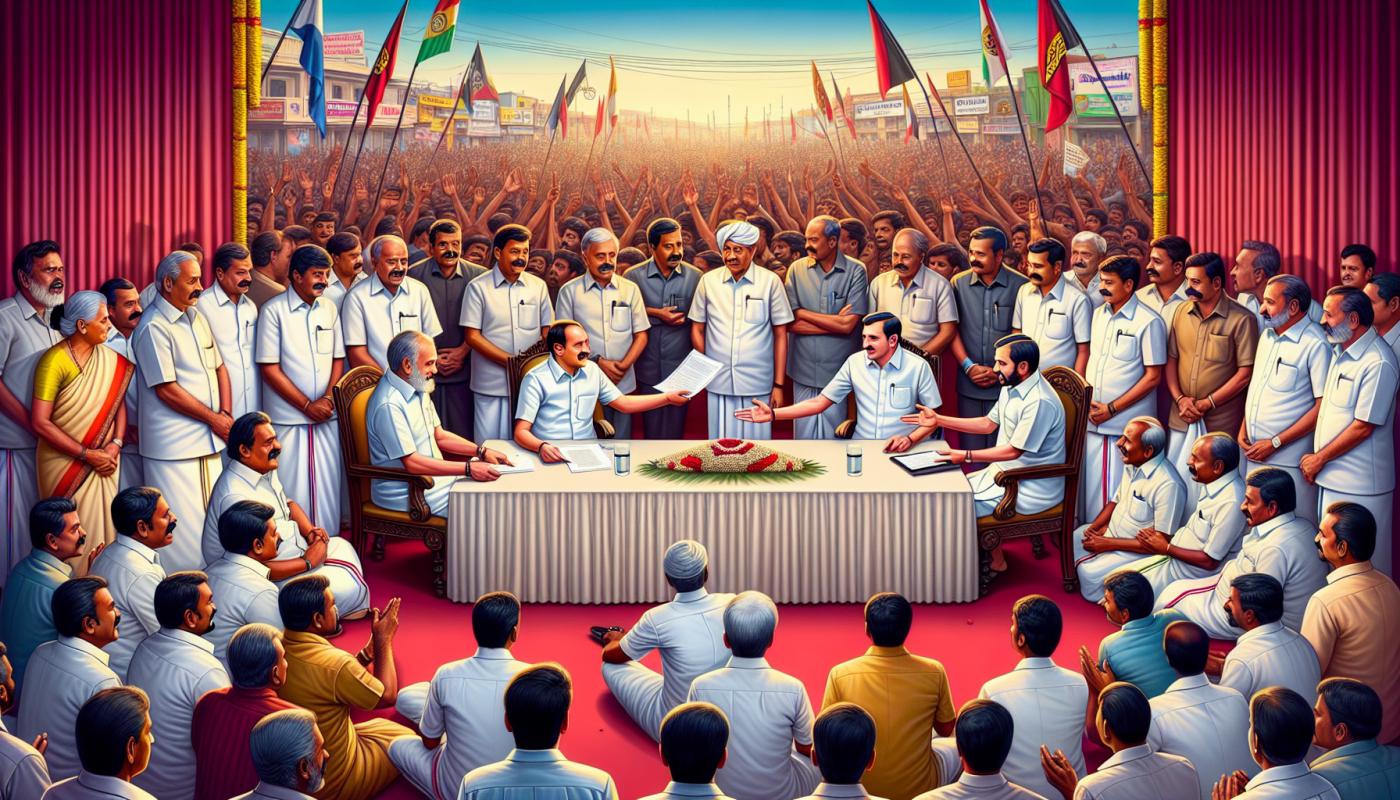 AIADMK नेता एडप्पाडी के. पालनीस्वामी (ईपीएस) ने तमिलनाडु के तिरुचिरापल्ली में प्रधानमंत्री नरेंद्र मोदी से मिला, जबकि AIADMK-BJP गठबंधन के भविष्य के बारे में चल रहे तनाव और अटकलों के बीच। इस मुलाकात में मुख्य मांगों के साथ एक मेमोरेंडम प्रस्तुत किया गया, जो दोनों पक्षों के बीच तनावपूर्ण संबंधों और आगामी राज्य और राष्ट्रीय चुनावों के लिए अपनी रणनीति को ध्यान में रखते हुए आया। यह यात्रा पीएम मोदी के सांस्कृतिक कार्यक्रमों और मंदिर दर्शन के साथ सम्मिलित हुई, लेकिन ईपीएस-मोदी की मुलाकात के राजनीतिक परिणाम सुर्खियों पर चर्चा कर रहे थे। पार्टी के कार्यकर्ताओं और नेताओं की इस एकत्रिति ने तमिलनाडु के राजनीतिक परिदृश्य के लिए गठबंधन की महत्वता को हाइलाइट किया। देखनेवाले इसे 2026 के चुनावों से पहले गठबंधन गतिकी को आकार देने वाला महत्वपूर्ण पल मान रहे हैं।