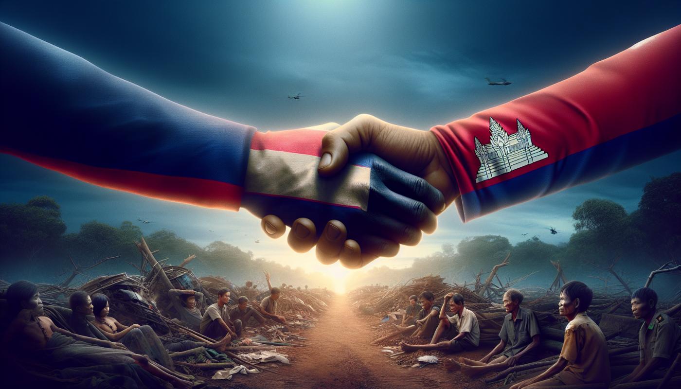 पांच दिनों के तनावपूर्ण संघर्ष के बाद, थाईलैंड और कंबोडिया ने एक तत्काल और शर्तमुक्त युद्धविराम पर सहमति जताई है, जो रात्रि के 12 बजे से प्रभावी होगी। इस संघर्ष के कारण, जो एक पुराने सीमातंत्र विवाद पर उत्पन्न हुआ था, कम से कम 35 लोगों की मौत हो चुकी है और 260,000 से अधिक नागरिकों को अपने घरों से भागना पड़ा है। युद्धविराम को मलेशिया में हुई बातचीतों के दौरान समझौता किया गया था, जिसमें संयुक्त राज्य अमेरिका, मलेशिया, और ट्रेड धमकियों का दबाव था। दोनों देशों के नेताओं ने बातचीत में भाग लिया, लेकिन अधिकारियों ने नागरिकों को चेतावनी दी है कि सीमा क्षेत्र में वापस न लौटें जब तक यह सुरक्षित घोषित नहीं हो जाता। युद्धविराम एक महत्वपूर्ण उद्घाटन को दर्शाता है, लेकिन अनुवादित तनाव अनिर्णित हैं और युद्धविराम कमजोर हो सकता है।